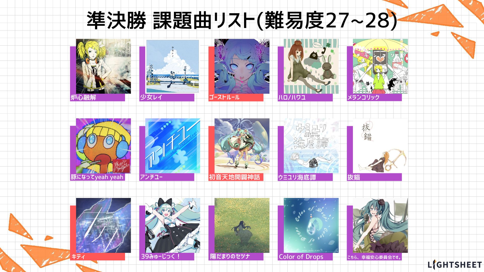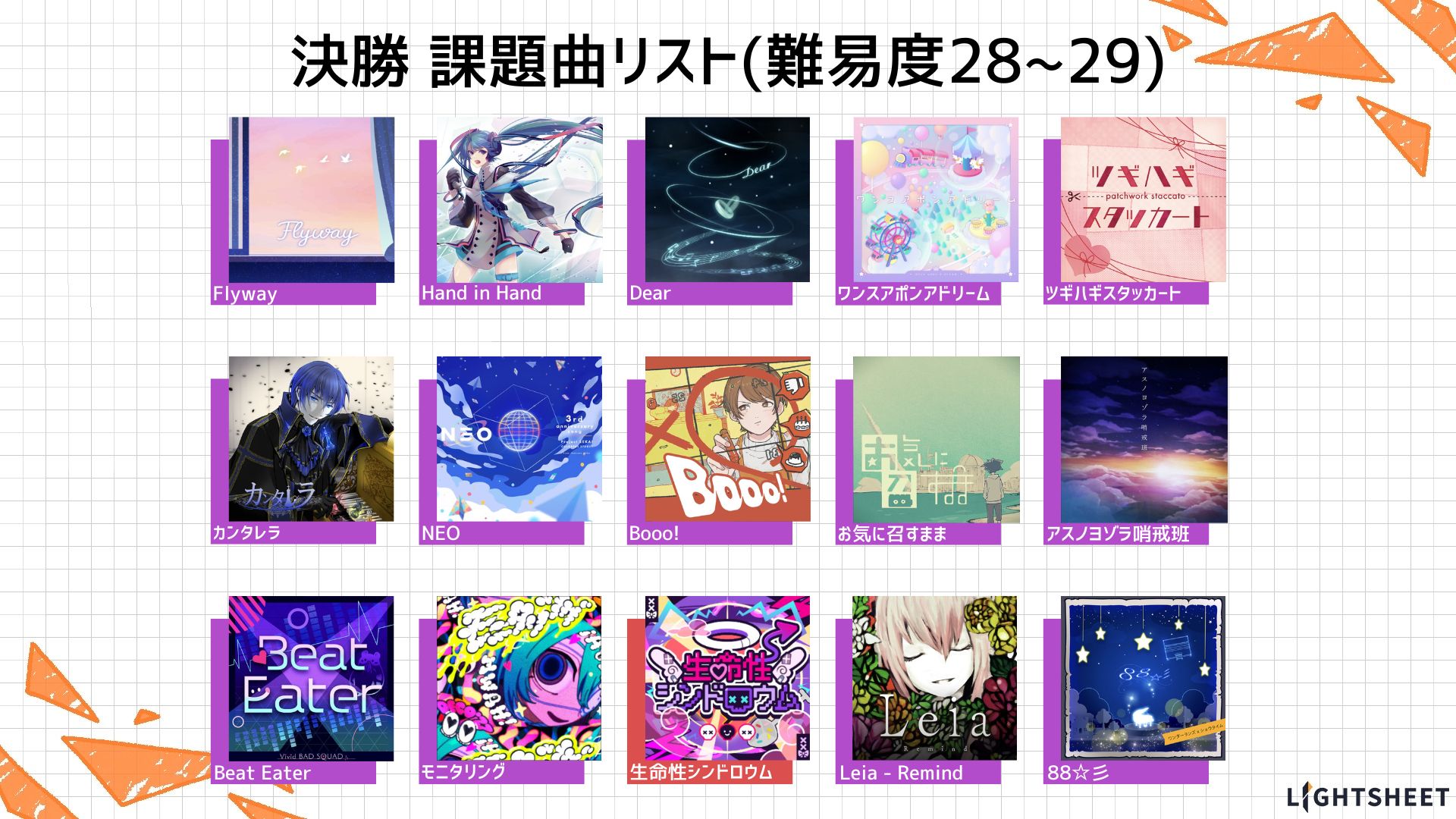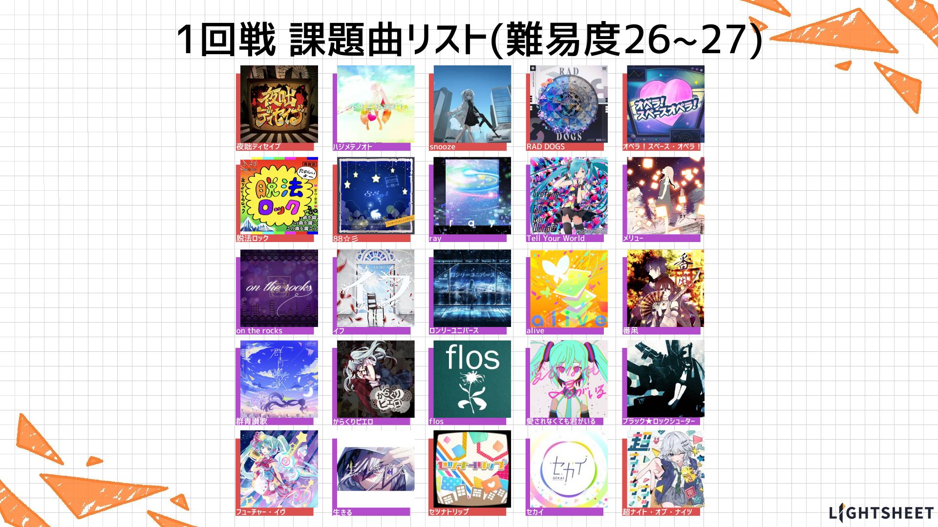対戦前にお互い課題曲リストから1曲PICKし、2曲で試合をします。