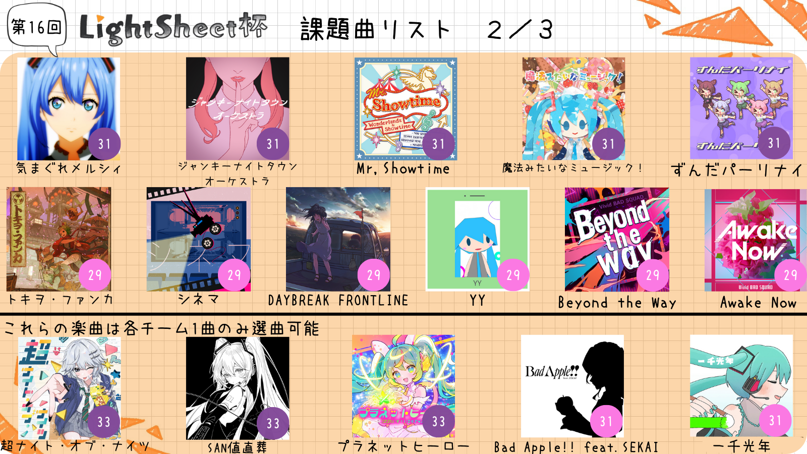 試合前に課題曲リストより1曲PICKしていただきます。