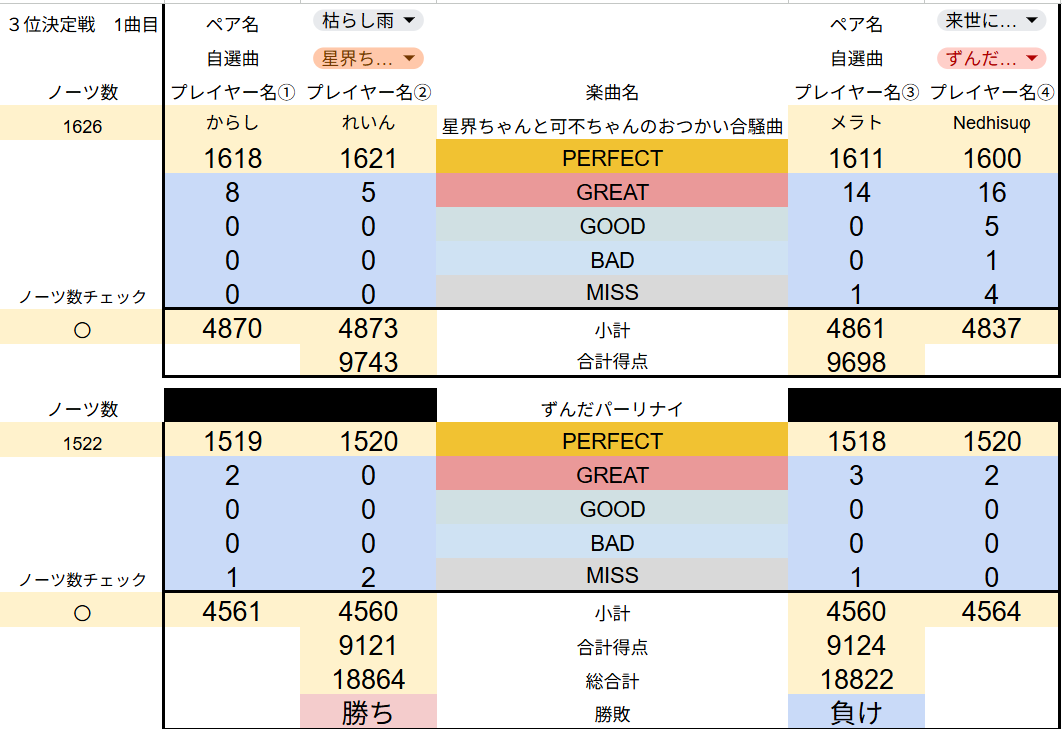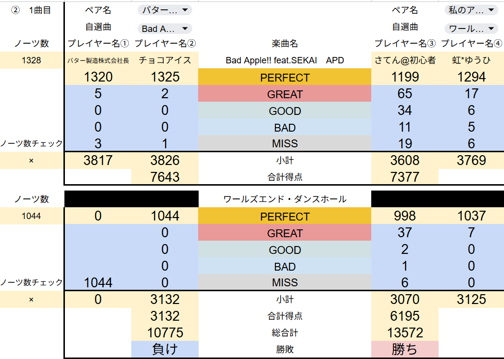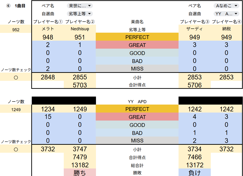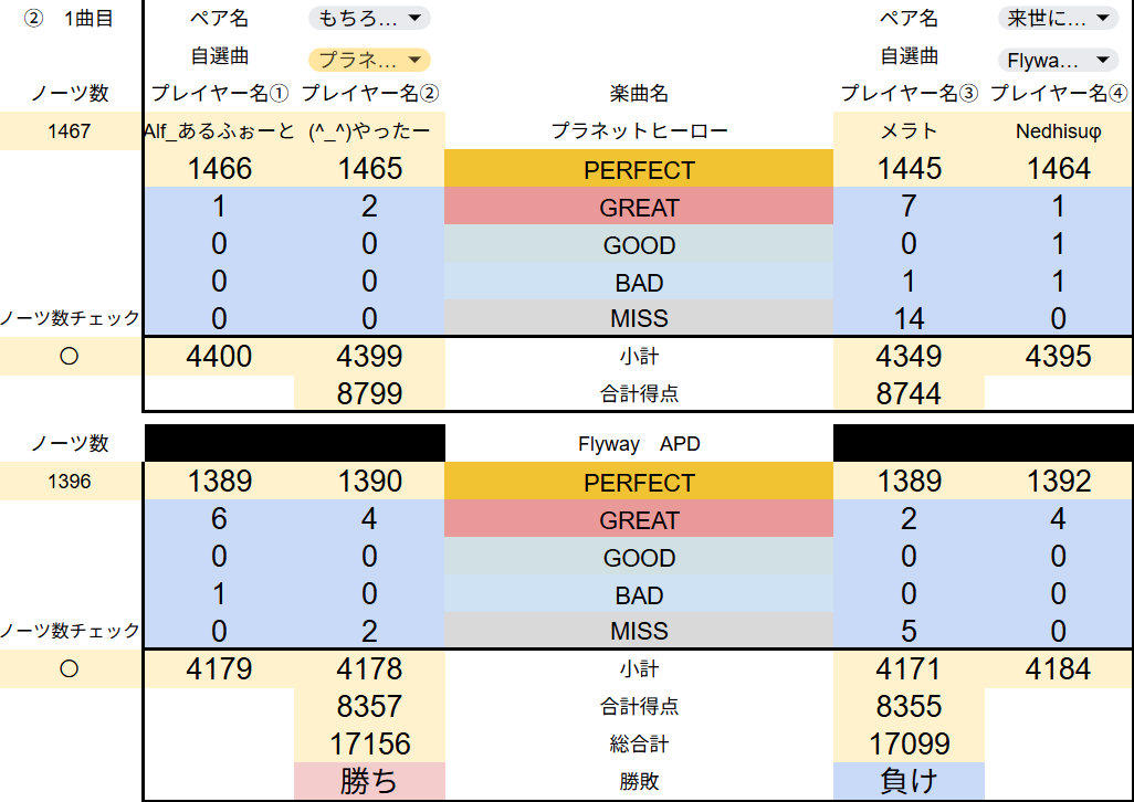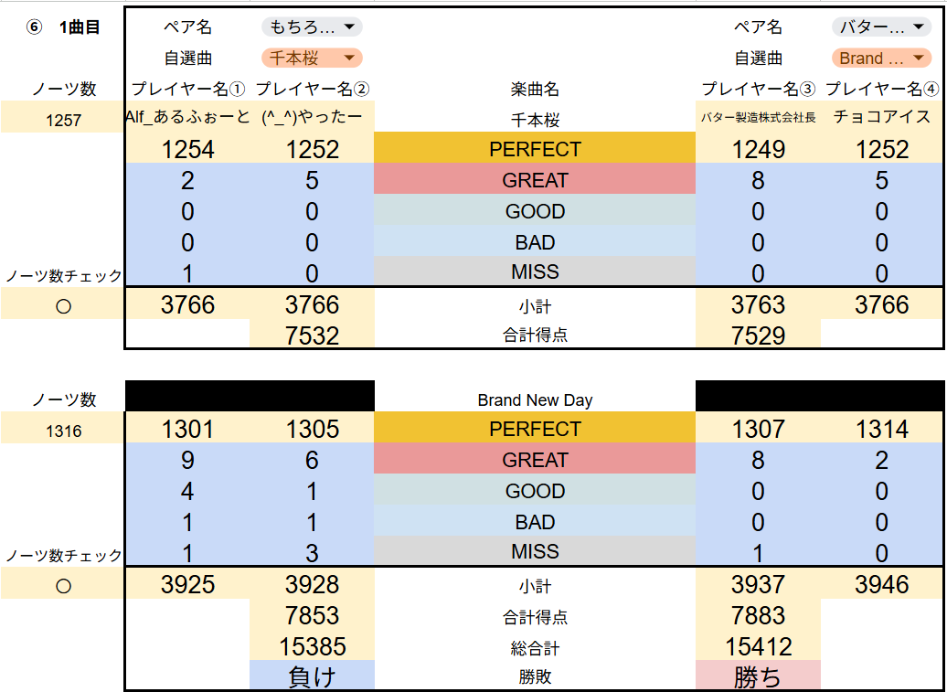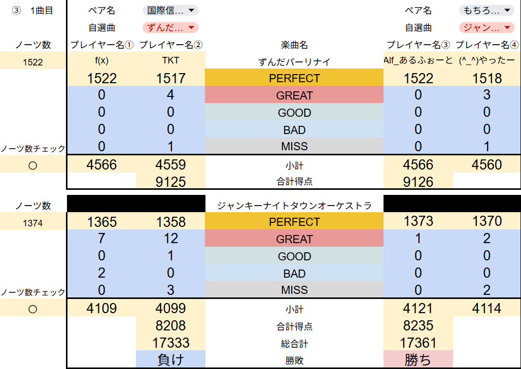 集計システムを再度見直し、修正をかけたので、全試合の最終結果を共有させていただきます。
