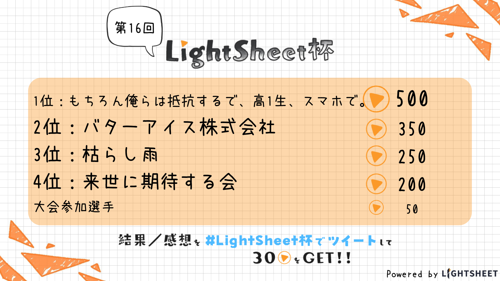 今後ともLightSheet杯をよろしくお願いいたします!
