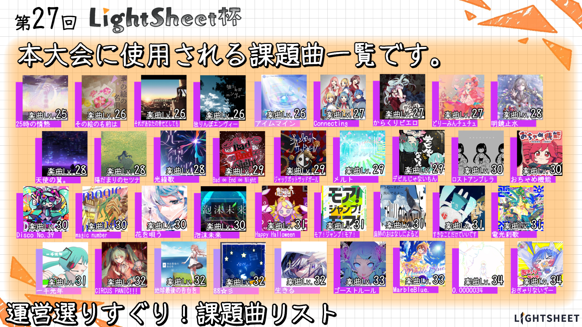 今回はLv.25~Lv.34の中から選りすぐりの36曲が対象です!!